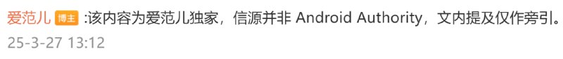 爱范儿独家获悉,Google 将不再维护目前 AOSP 的公开分支,逐渐关闭相关的的支持性资源,并可能停止更新有法定开源义务(GPL 等协议的代码)外的组件的源代码。#谷歌停止开源安卓##谷歌关闭安卓开源#